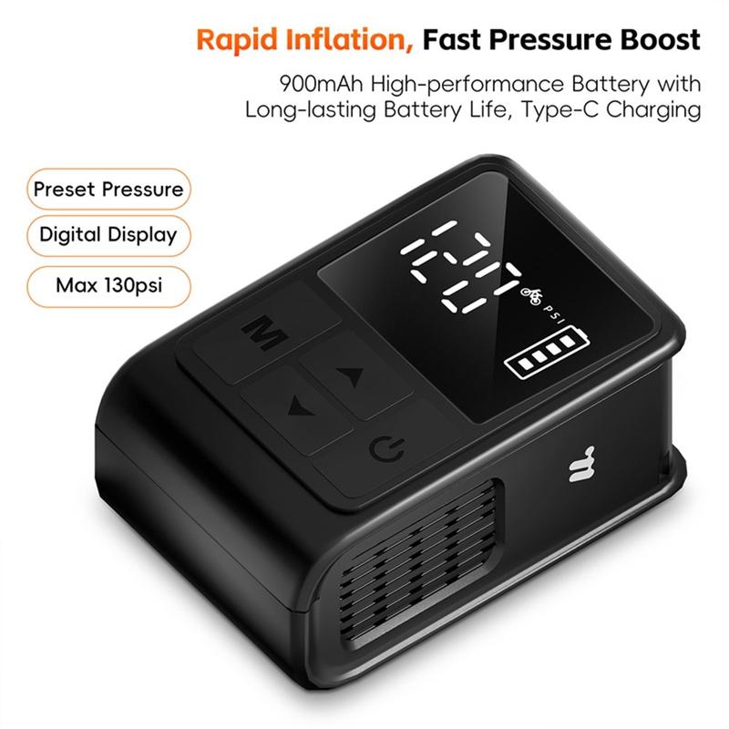 • West Biking YP0711196 Bomba eléctrica para bicicleta / Compresor de aire digital portátil con alta presión de 130 PSI y batería recargable