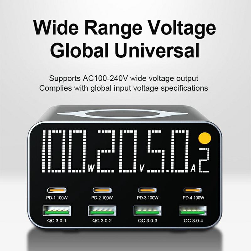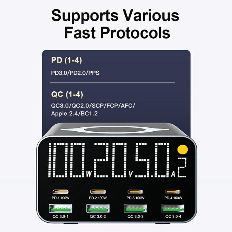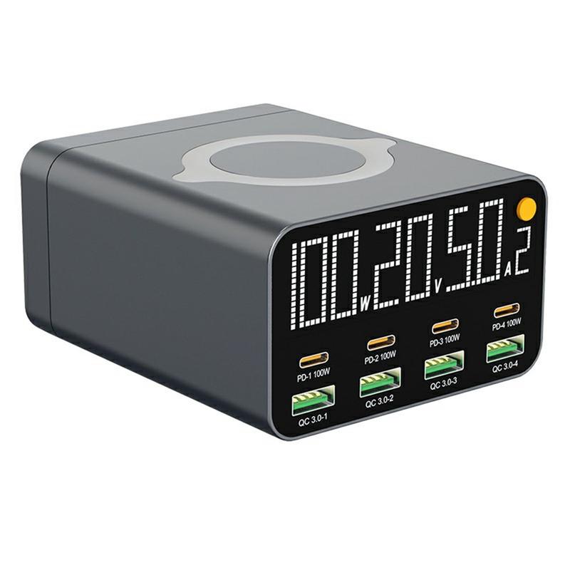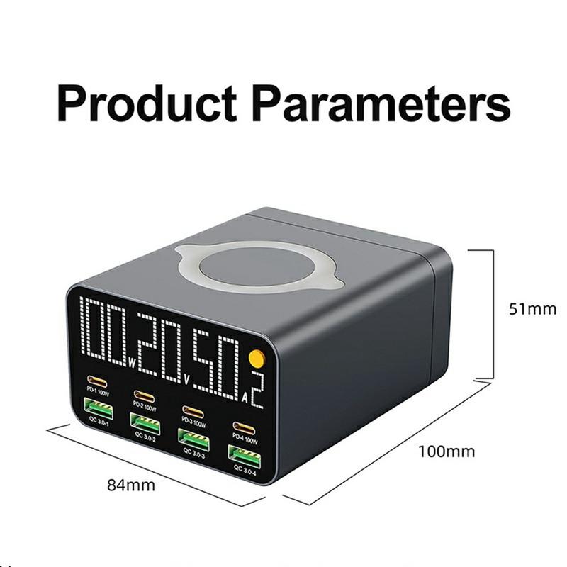 Estación de carga de sobremesa WLX-M1 de 120W - Cargador rápido USB-C GaN de 8 puertos con carga inalámbrica (enchufe UE)