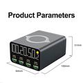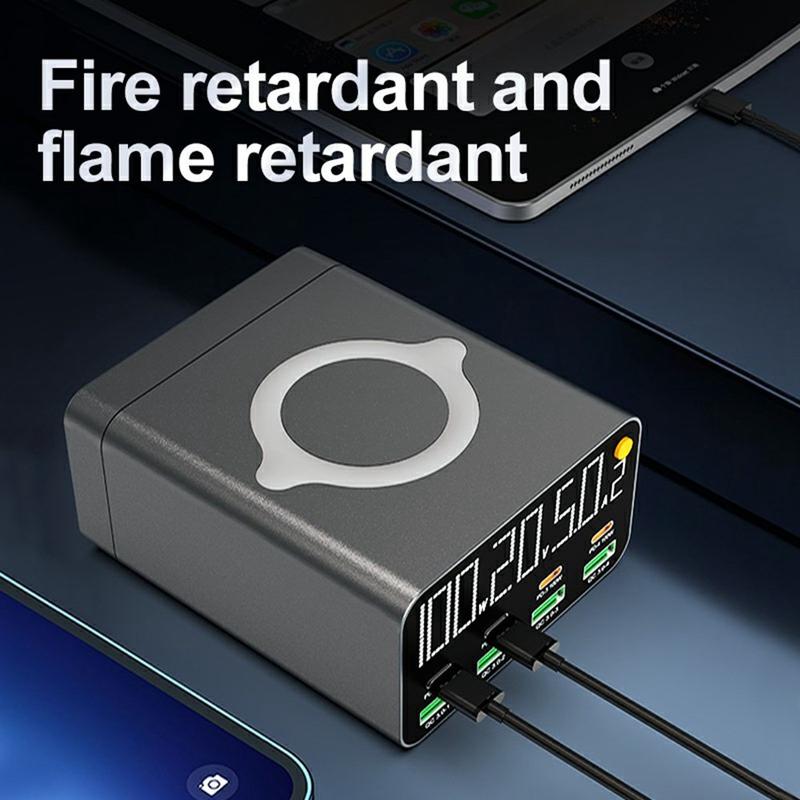 Una almohadilla de carga inalámbrica integrada de 5-15 W añade más comodidad para los smartphones y auriculares con Qi. El chipset GaN garantiza un mejor control térmico, una mayor eficiencia y un tamaño reducido, mientras que la compatibilidad de voltaje global (AC 100-240V) lo hace ideal para viajes y uso internacional.