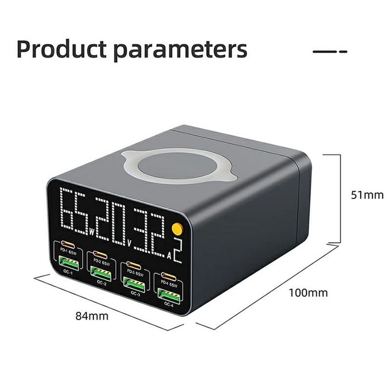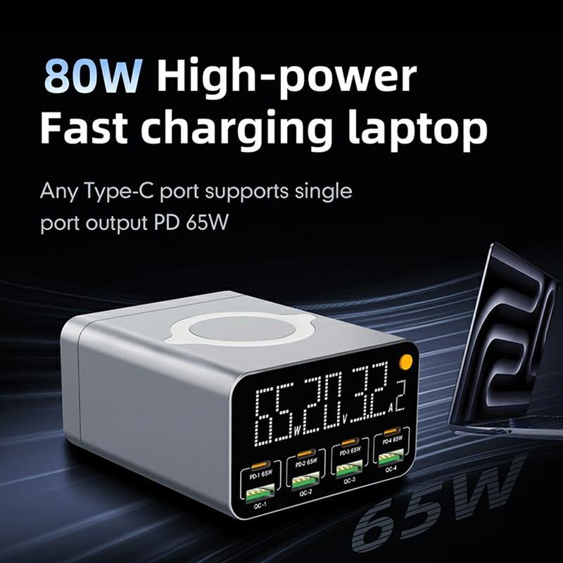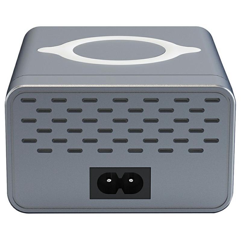 Estación de carga de sobremesa GaN WLX-M3 80W 9 en 1 - Cargador rápido multipuerto USB-C/USB con carga inalámbrica (enchufe UE)
