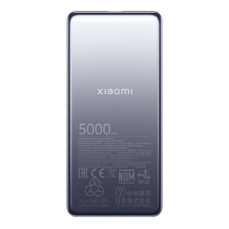 Xiaomi Ultra Slim Power Bank 5000mAh - Cargador portátil de carga rápida de 20W con acabado metálico