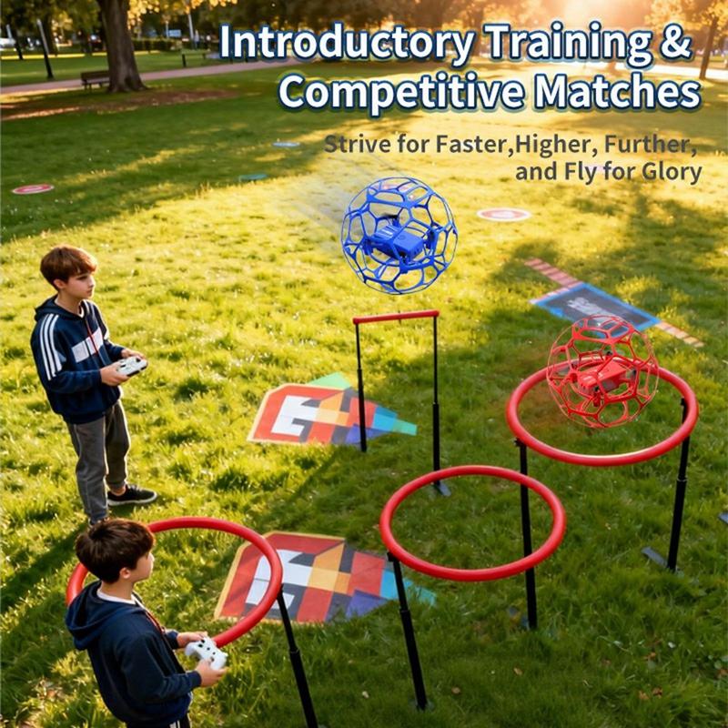 La jaula estilo balón de fútbol está hecha de material ABS duradero y ayuda a proteger el dron durante golpes o caídas. También evita el contacto directo con las hélices, ofreciendo mayor tranquilidad a los usuarios más jóvenes.