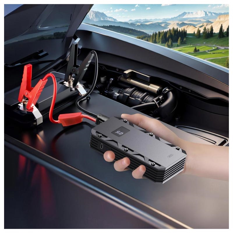 XO CZ025 Arrancador y banco de energía 3 en 1 10000mAh con linterna - Negro