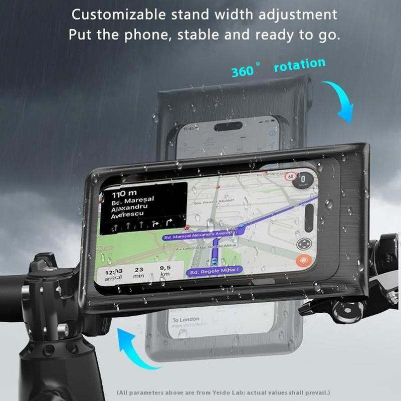 Conduce en cualquier condición meteorológica con la bolsa impermeable para teléfono YESIDO C333, diseñada para bicicletas y bicicletas eléctricas. Su estructura totalmente cerrada con clasificación IP67 ayuda a proteger tu teléfono de la lluvia, el polvo y las salpicaduras de la carretera, mientras que la gran ventana transparente mantiene la pantalla visible para la navegación y las llamadas. Con una rotación de 360 grados y un soporte seguro para el manillar, puedes ajustar el ángulo de visión perfecto y mantener tu dispositivo estable en cada viaje.
