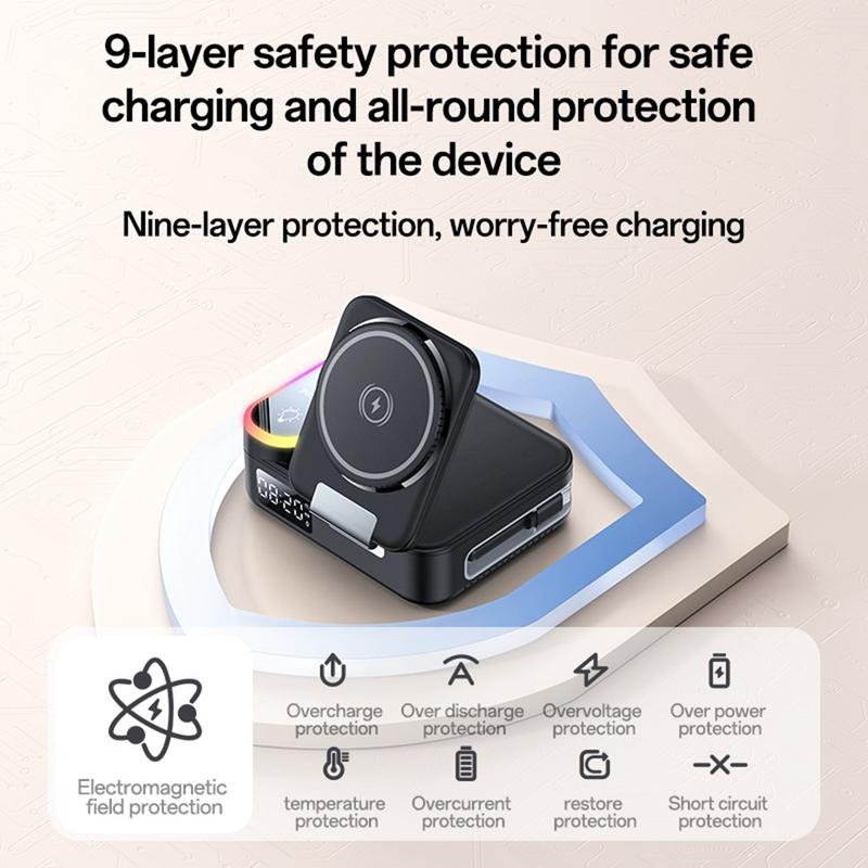 - Carga inalámbrica magnética: admite carga inalámbrica de 15 W / 10 W / 7,5 W / 5 W para smartphones, 5 W para auriculares y 2,5 W para smartwatches con alineación magnética para una colocación segura.