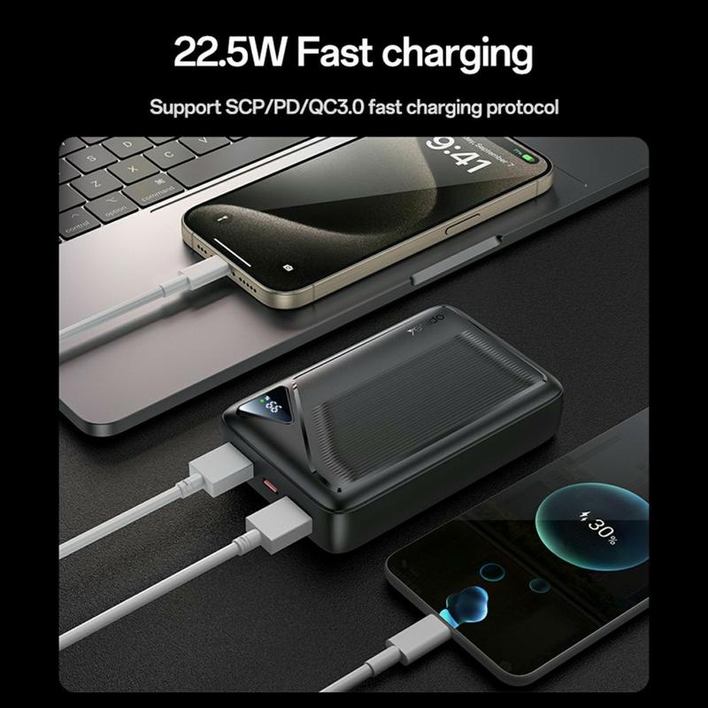 Compacto pero potente, el YESIDO YP82 Power Bank está diseñado para mantener tus dispositivos cargados dondequiera que te lleve la vida. Con una capacidad de 10000mAh y tecnología de carga rápida de 22.5W, alimenta eficazmente smartphones, tabletas y otros dispositivos compatibles con USB. La clara pantalla digital proporciona el estado de la batería en tiempo real, mientras que su sistema de seguridad inteligente garantiza un rendimiento óptimo sin sobrecalentamiento. Ligero y portátil, es el compañero ideal para los viajes, el trabajo y los desplazamientos.