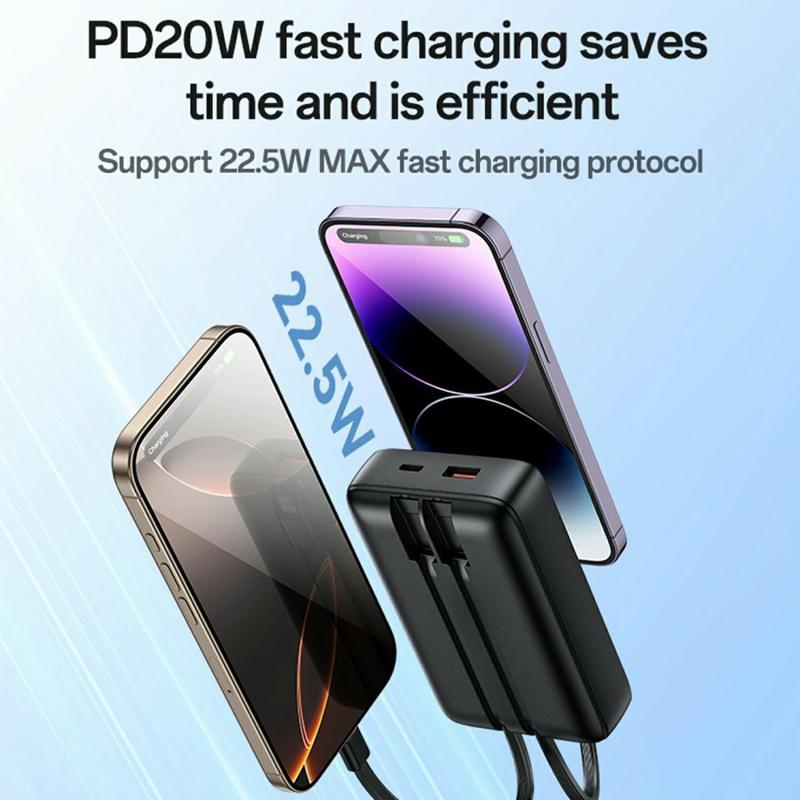 Disfruta de toda la energía allá donde vayas con la batería YESIDO YP85, diseñada para ofrecer eficiencia y comodidad. Con una gran capacidad de 20000 mAh y tecnología de carga rápida de 22.5W, proporciona energía rápida y fiable para smartphones, tablets y otros dispositivos portátiles. Los cables Type-C y Lightning integrados eliminan la necesidad de llevar cables adicionales, mientras que la pantalla digital inteligente muestra el estado de la batería en tiempo real. Compacto, potente y versátil, es el cargador de uso diario definitivo para viajes, trabajo o aventuras al aire libre.
