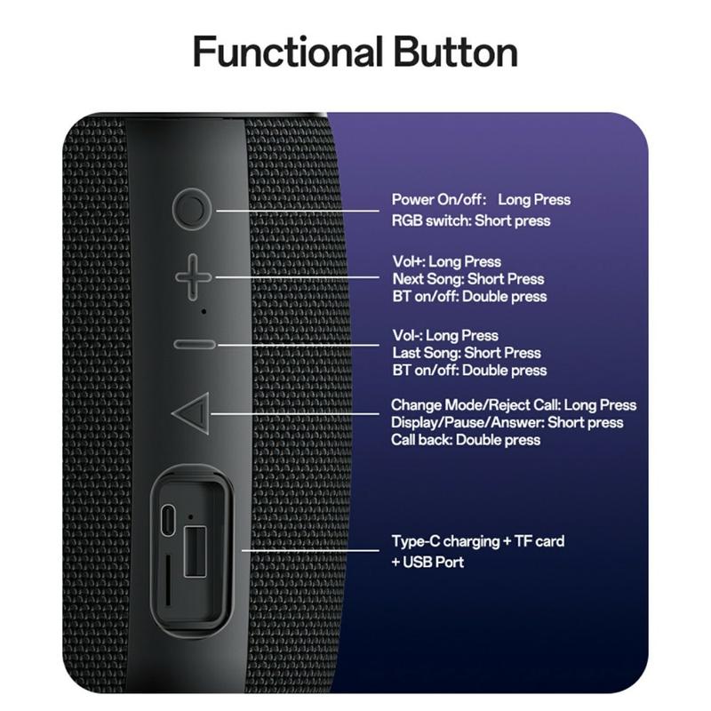 - Múltiples modos de reproducción: Admite Bluetooth 5.3, tarjeta TF, USB, AUX y TWS para una conectividad versátil.