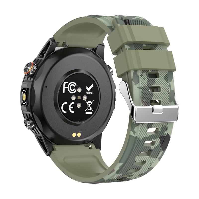Diseñado para las aventuras al aire libre, el reloj cuenta con una linterna integrada, posicionamiento GPS y una brújula digital, lo que le ayuda a navegar por los senderos y realizar un seguimiento de sus rutas con confianza. Su batería de alta capacidad de 580 mAh ofrece un rendimiento duradero, con hasta 40 días de tiempo en espera y aproximadamente 7 días de uso regular. Con una clasificación de resistencia al agua IP68, soporta la lluvia, las salpicaduras y la natación sin preocupaciones.