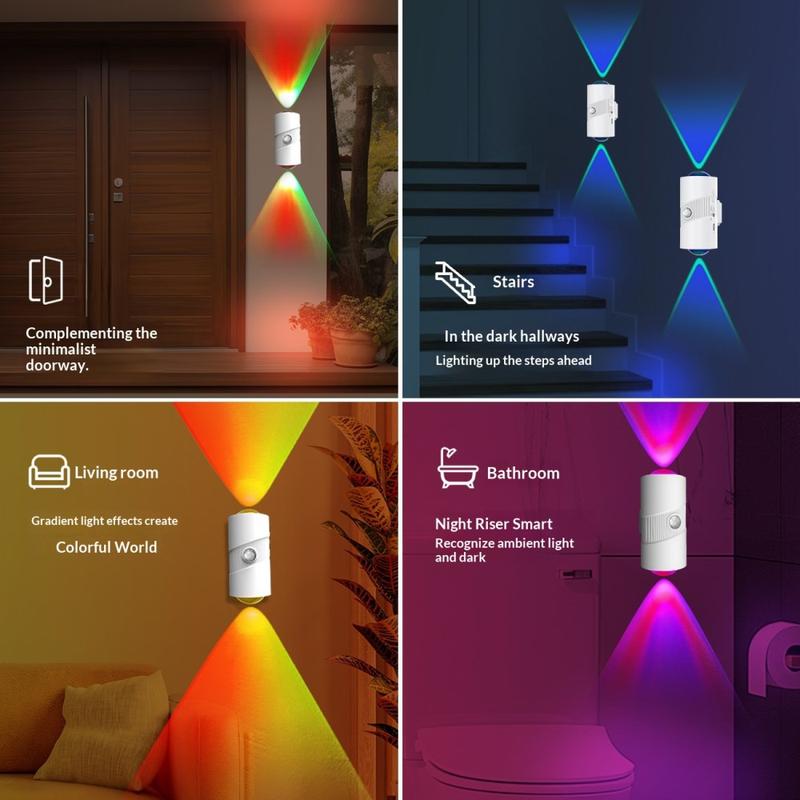 Añade una iluminación práctica y un suave toque decorativo a tu hogar con la luz nocturna inteligente con sensor de movimiento RGB YSJ-008A. Diseñada para pasillos, dormitorios, armarios, baños y entradas, esta luminaria de pared compacta combina detección automática de movimiento, brillo ajustable y coloridos efectos de iluminación RGB en una cómoda unidad recargable.