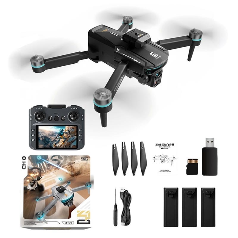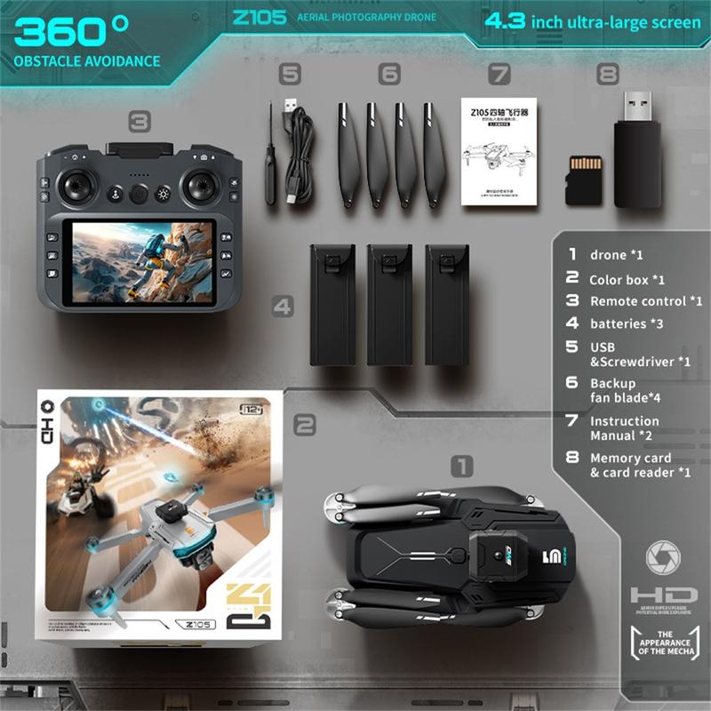 Z105 Dron Inteligente con Doble Cámara, Pantalla de 4.3", Controlador y 3 Baterías - Quadcopter con Motor sin Escobillas para Evitar Obstáculos