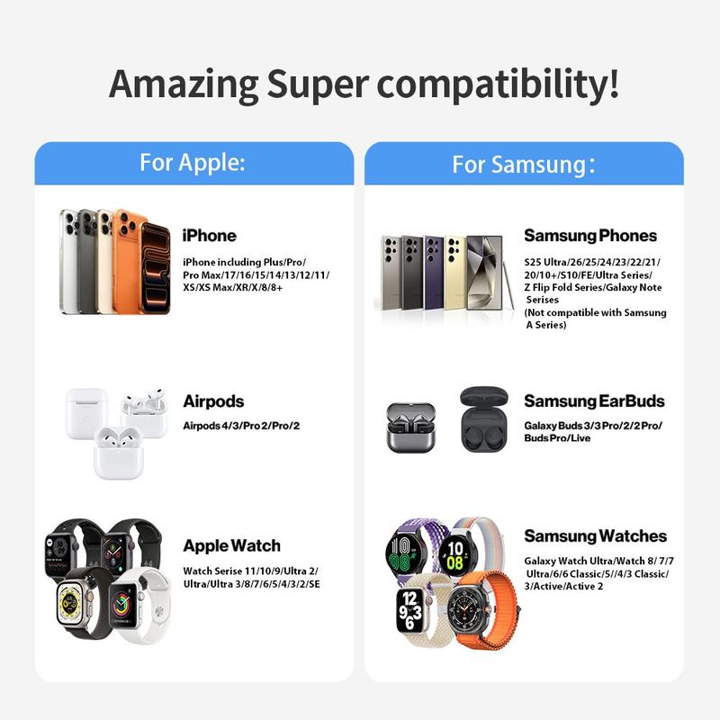 Úsalo en tu mesita de noche para cargar tu teléfono, reloj y auriculares durante la noche, en el escritorio de tu oficina para tener un espacio de trabajo más ordenado, o en el salón para recargas rápidas durante el día. Es especialmente útil para personas que quieren tener sus dispositivos cargados, organizados y al alcance de la mano en todo momento.