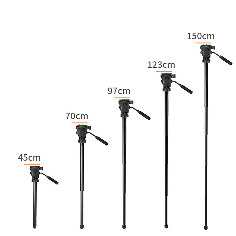 El soporte del cabezal fluido permite un giro suave de 360° e inclinación vertical, ideal para fotografía panorámica o grabación de vídeo. El nivel de burbuja integrado y la empuñadura ergonómica ayudan a conseguir un encuadre estable y una composición profesional en todo momento.