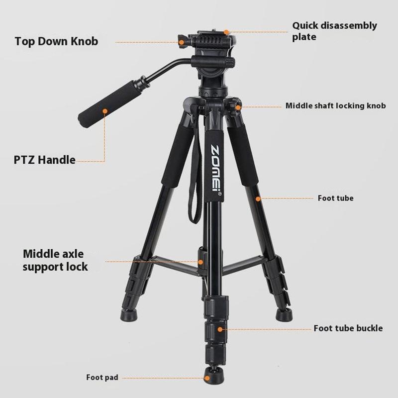 Capta todos los ángulos con confianza con el trípode ZOMEi Q310, un sistema de soporte versátil y resistente para cámaras y smartphones por igual. Con una sólida estructura de aleación de aluminio, un cabezal fluido suave y una altura totalmente ajustable, este trípode es perfecto para fotografía, videografía, retransmisiones en directo y viajes.